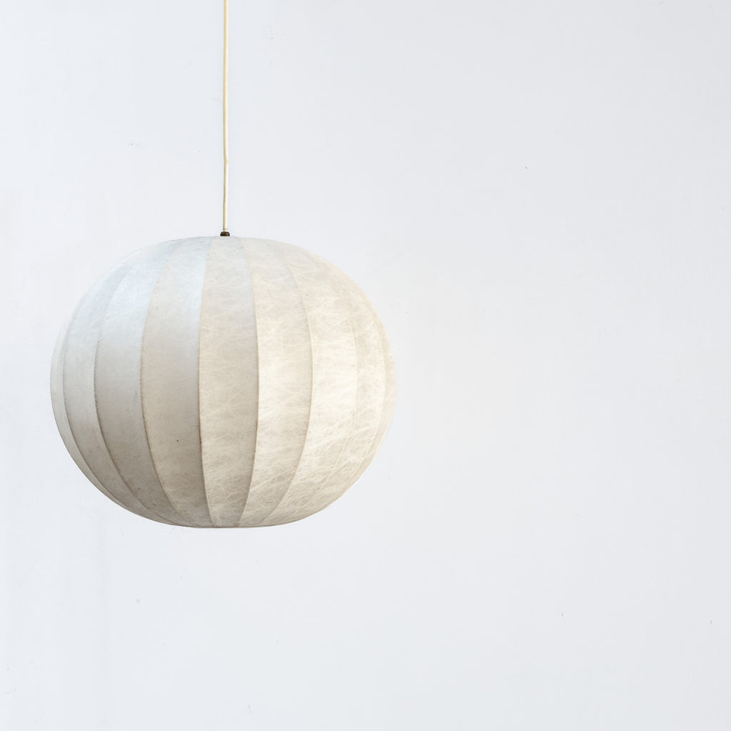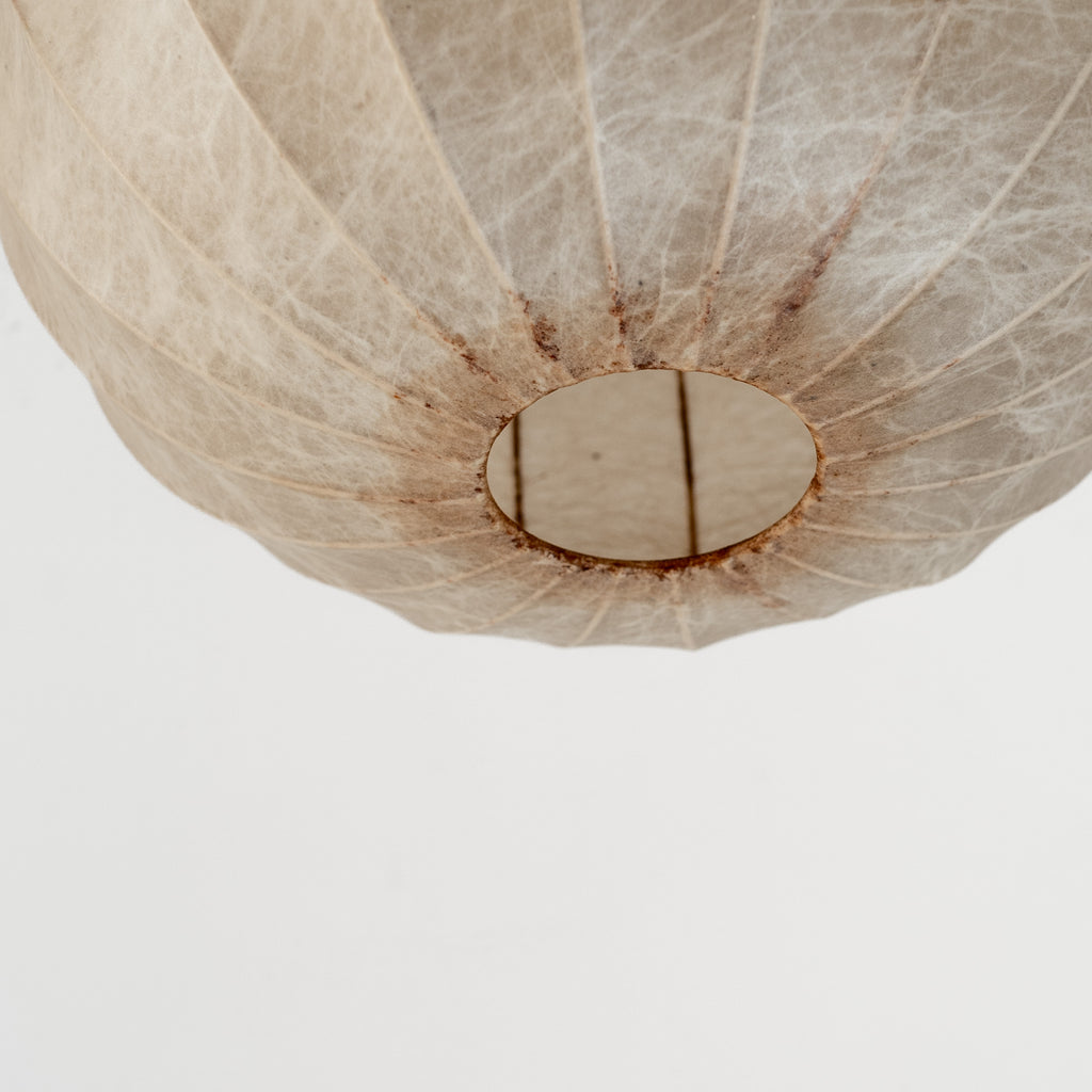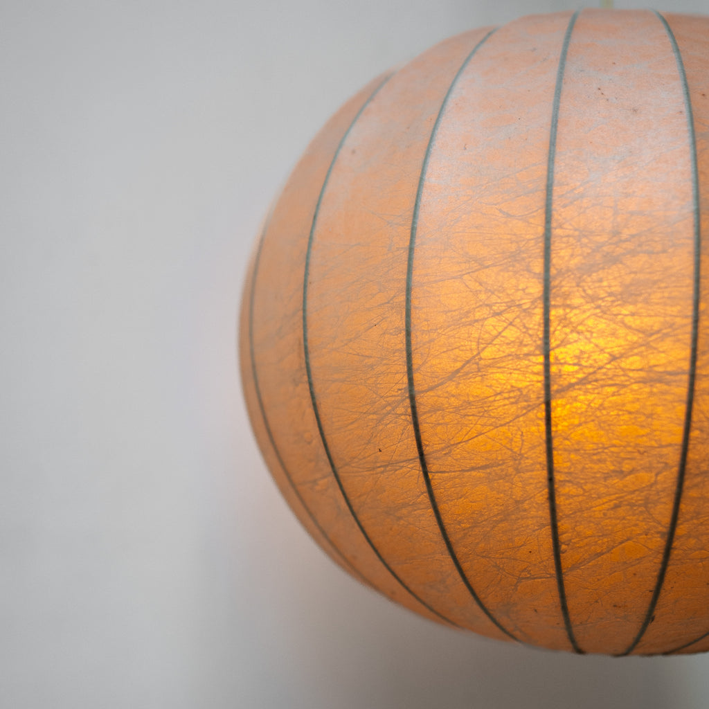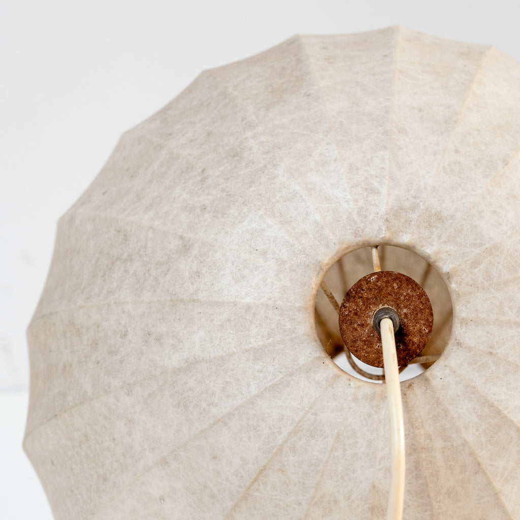 アキッレ・カスティリオーニ とピエル・ジャコモ・カスティリオーニ によるFlos社製Cocoon ペンダントランプ。繭のような有機的フォルムが光をやわらかく包み込み、空間に静かで温かな雰囲気をもたらします。イタリアンモダンを象徴する、彫刻的かつタイムレスな名作です。