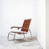 This lounge chair reflects Marcel Breuer’s modernist approach to furniture design, featuring a cantilevered tubular steel frame and leather strap seating. The combination of chrome-plated steel and warm leather creates a strong yet visually light structure. Offering comfort and flexibility, the chair maintains a sculptural presence and stands as a refined example of modernist furniture design, suitable for both residential and curated interiors.