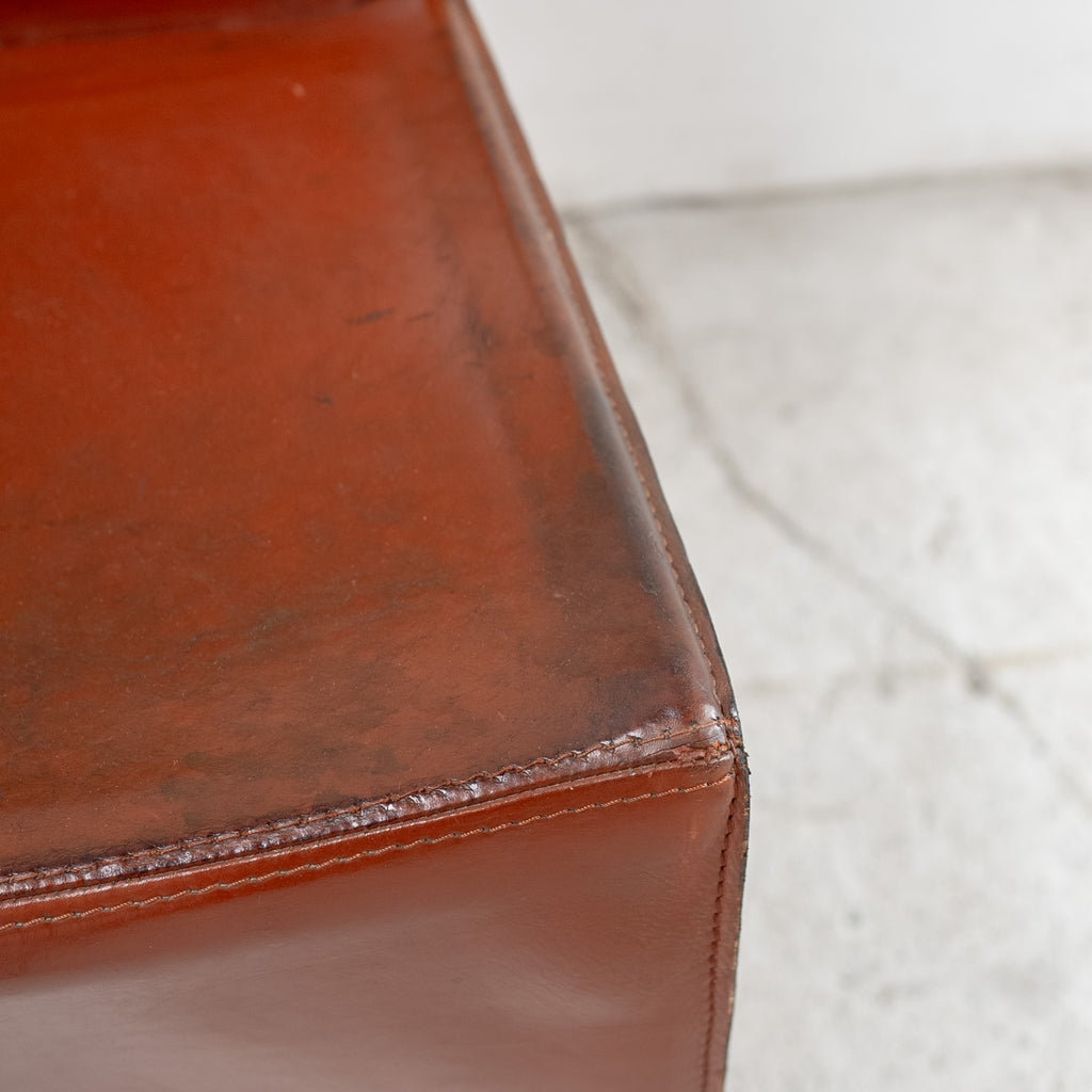 フィリップ・スタルクによってデザインされ、イタリアのDriadeより1発表されたチェア。細身の アルミニウムフレームと、曲線的なレザーの座面・背もたれの組み合わせが特徴で、軽やかで彫刻的なフォルムを生み出しています。ミニマルな構造の中に大胆な造形を感じさせる、スタルクの初期作品らしいポストモダンデザインの魅力が表れた一脚です。