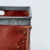 フランス SUROY 社によるボックス。赤色のファイバー製で、リベット留めと刻印入りのディテールが特徴。もとは工場で資材収納用に使用されていたもので、現在では豊かなパティナを持つ彫刻的なオブジェとして人気があります。