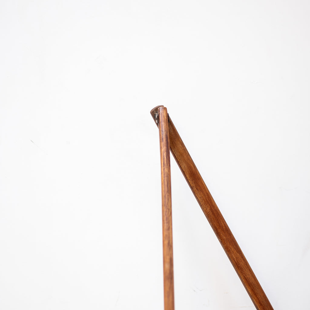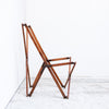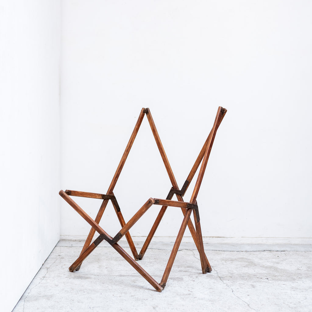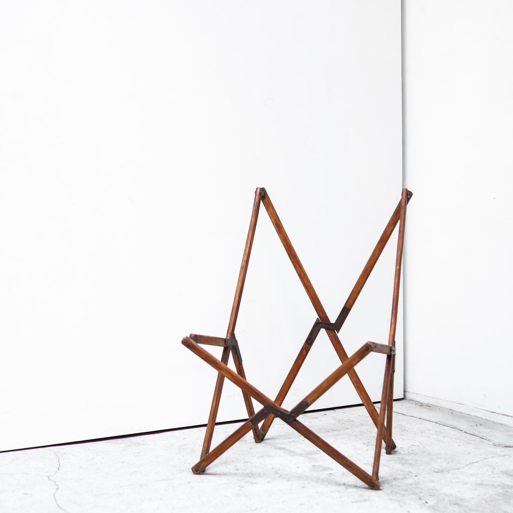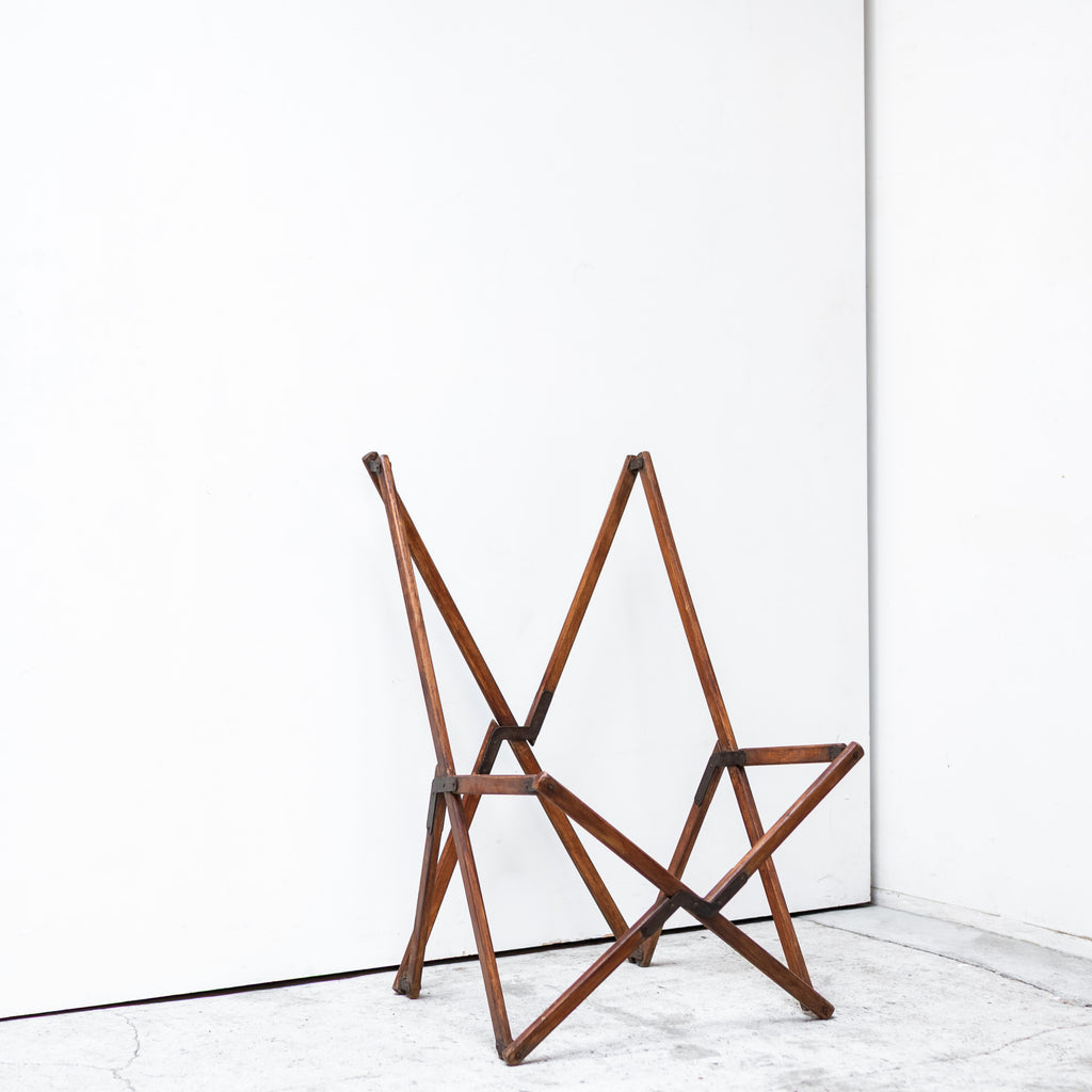後に有名な「トリポリナチェア」に受け継がれた、独創的なXフレームデザインの初期モデルです。木製フレームと金属ジョイントが調和し、軽やかさと安定性を兼ね備えています。