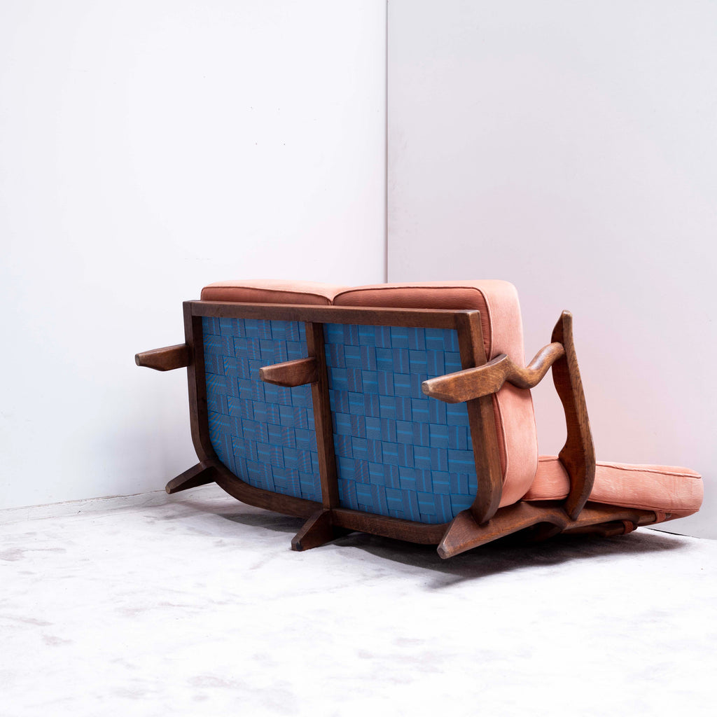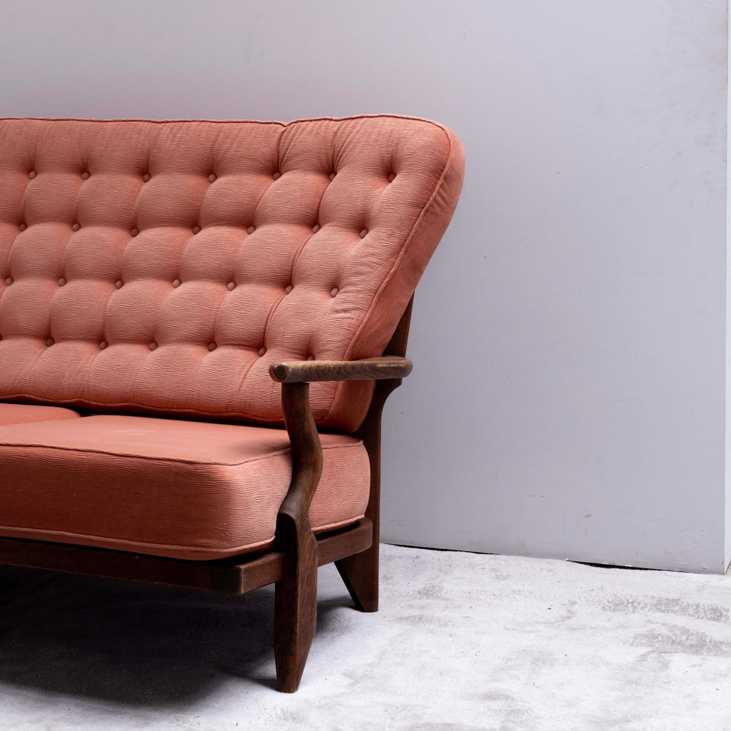 ロバート・ギョームとジャック・シャンブロンの2人からなるフランスのデザインユニットによるソファ。彫刻的なデザインが特徴です。ファブリックはオリジナルのものになります。