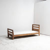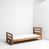 ルネ・ガブリエルによるフランス製ベッド。堅牢なオーク材を使用し、構造の誠実さと温かみのある建築的なシンプルさが魅力です。ガブリエルらしい均整の取れたプロポーションが、戦後フランス・モダンデザインの精神を感じさせます。