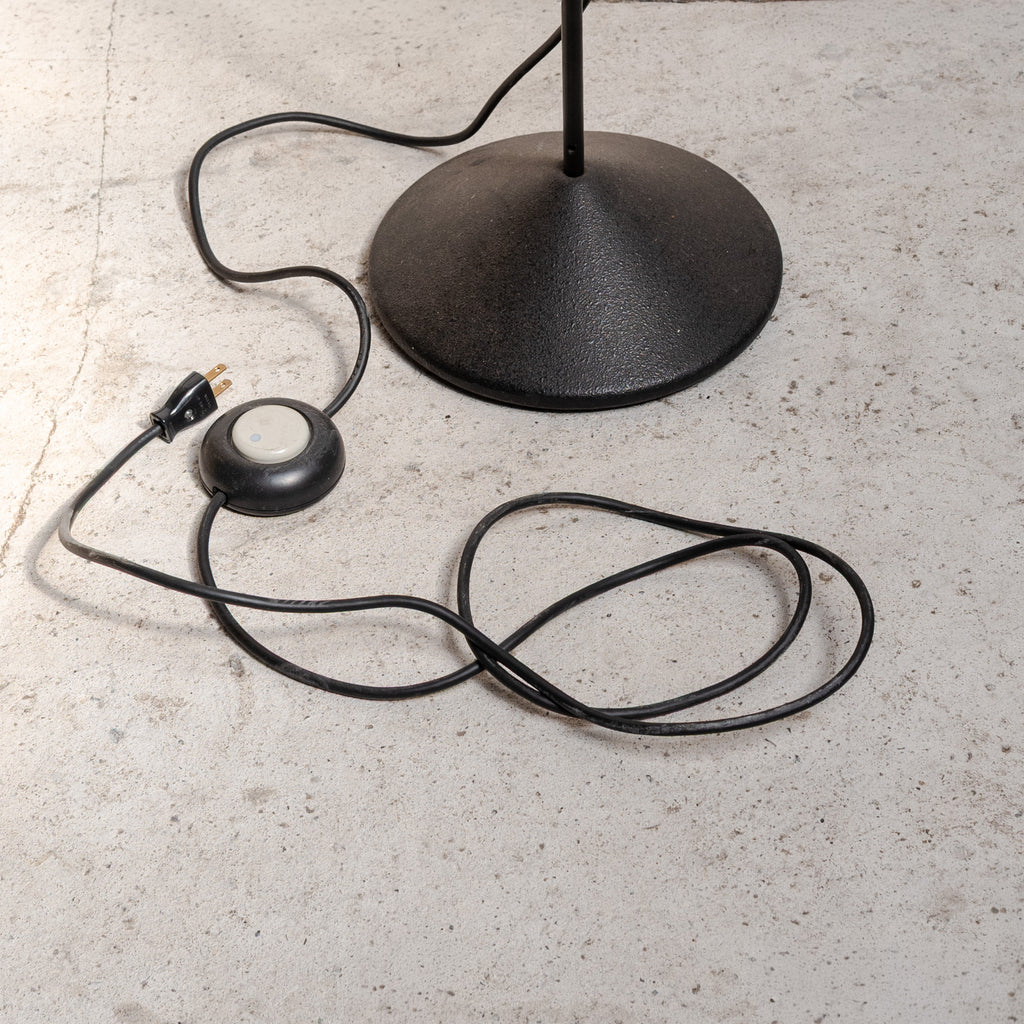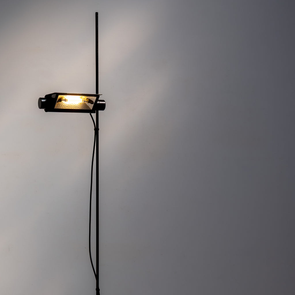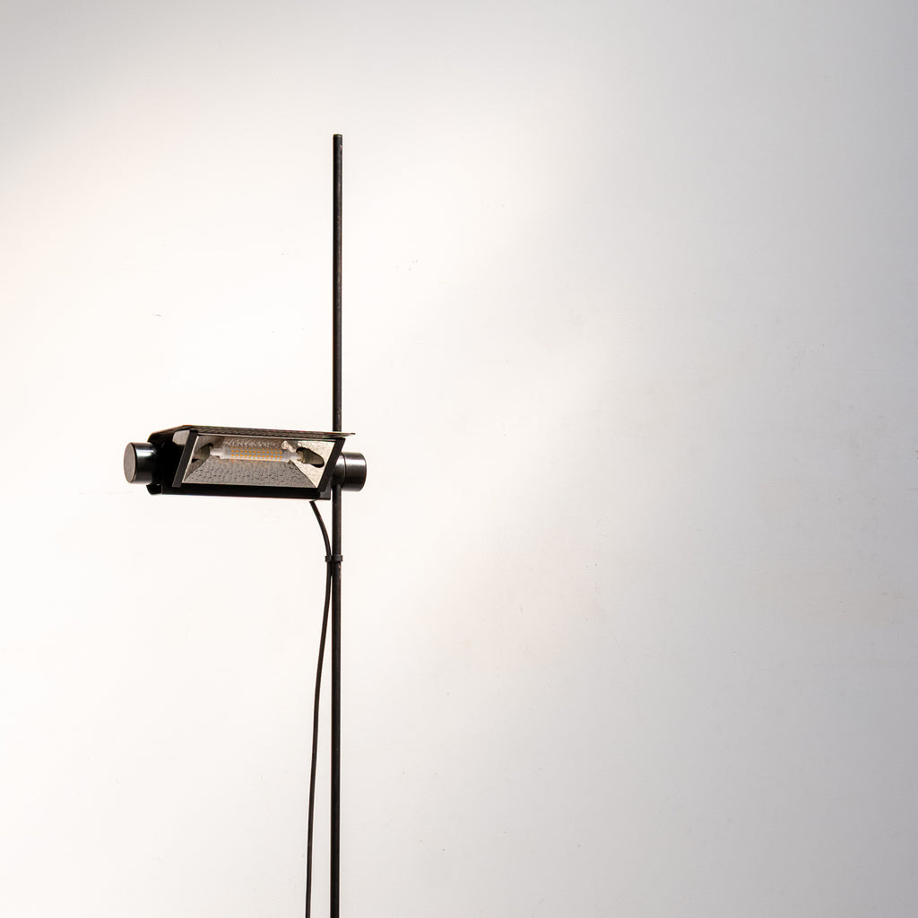 A sleek and architectural floor lamp designed by Raul Barbieri and Giorgio Marianelli for Tronconi. The minimalist structure highlights Italian industrial elegance, featuring an adjustable shade and slim black stem that create a refined, timeless silhouette.