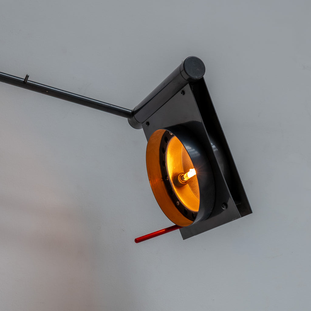 イタリア製ヴィンテージ壁掛けランプ。長いアームが可動し、角度や位置を自由に調整できるミニマルな壁付けランプ。彫刻的なラインと柔らかな光が空間に表情を与えます。