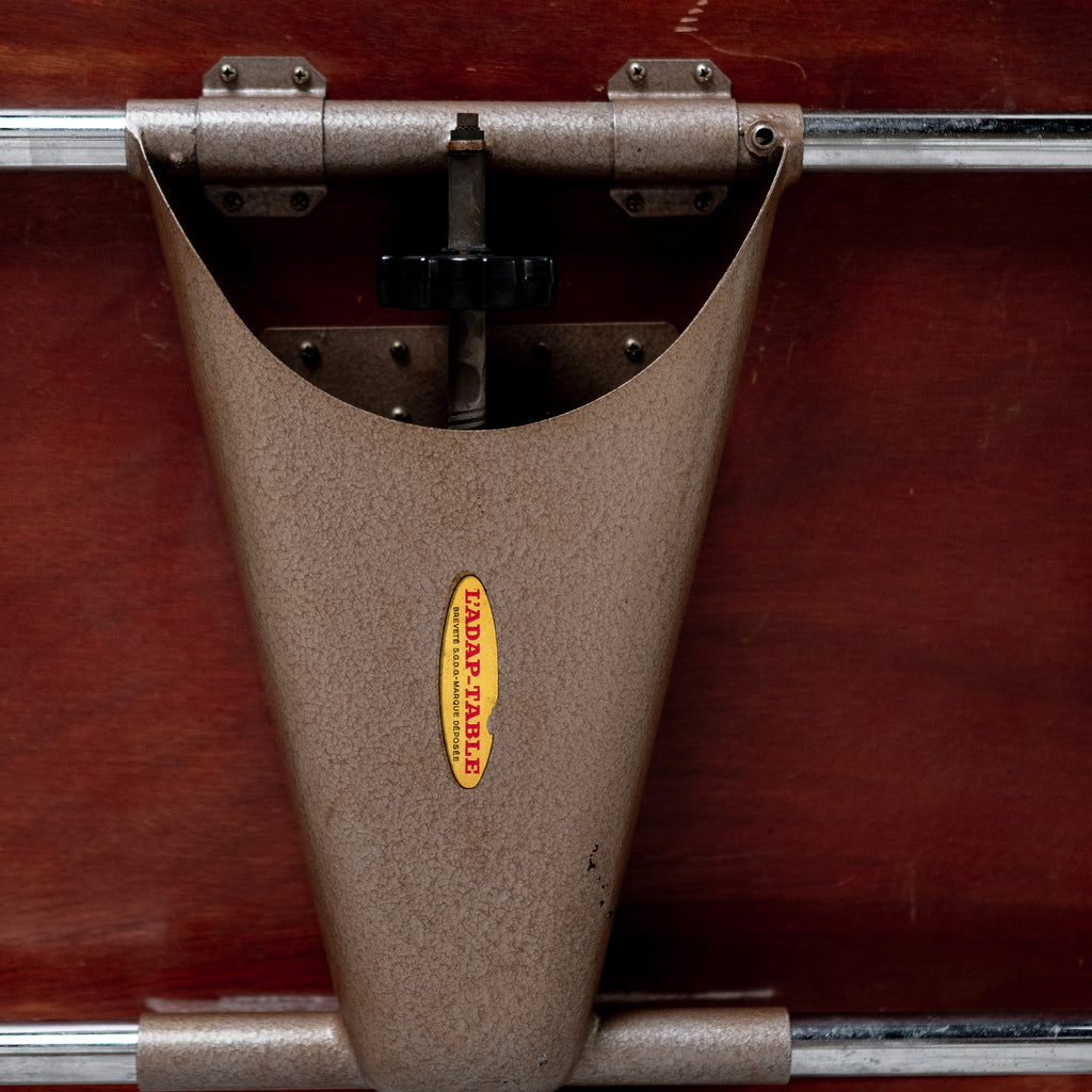 フランスで製造されたヴィンテージのアジャスタブルテーブルです。クロームメッキのチューブラーフレームにキャスターを備え、高さ調整が可能な構造が特徴。軽やかで建築的なフォルムと実用性を兼ね備えています。赤みのあるラミネート天板とクロームベースのコントラストが美しく、空間にアクセントを与えます。サブ天板付きで、サイドテーブルやコンパクトなワークスペースとして多用途にお使いいただけます。