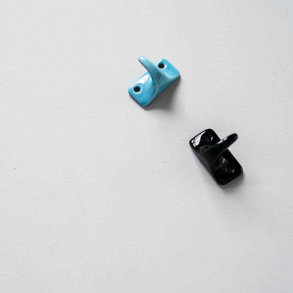 丸みのあるフォルムと滑らかな釉薬仕上げが特徴のセラミック製ウォールフック。玄関やバスルーム、キッチン、ワークスペースなど、さまざまなシーンで取り入れやすく、日常的に使いやすいアイテムです。壁面にすっきりと収まり、機能性と程よい存在感を兼ね備えています。