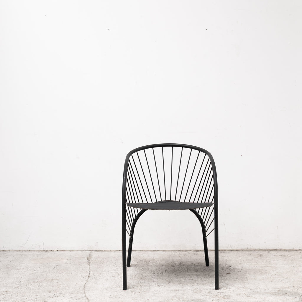 金属フレームによるリズミカルなラインと、空間に抜け感をもたらす軽やかな構造が印象的な Lizzie アームチェア。彫刻的な存在感を持ちながらも実用性を兼ね備え、インテリアの中で自然にアクセントとなる一脚です。