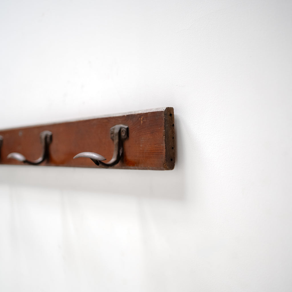 Vintage Wooden Coat Rack with Iron Hooks
