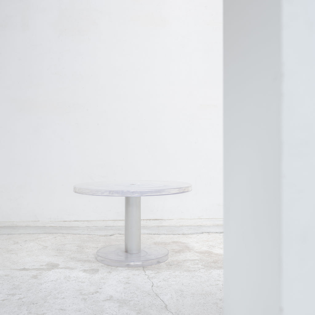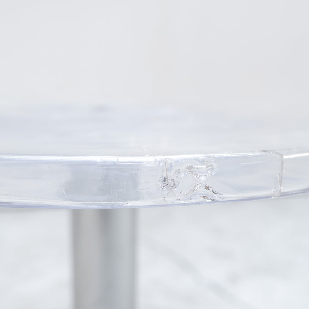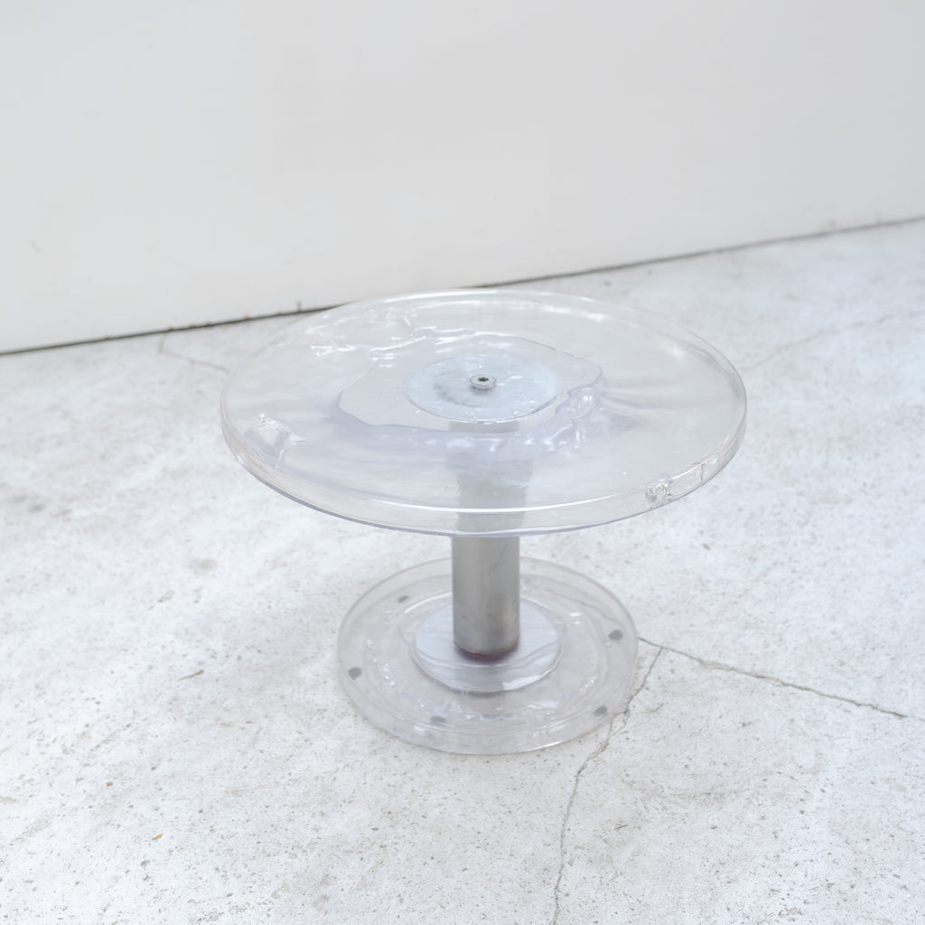 実験的なライン Sturm und Plastic による「Ice Table」を思わせる透明感あふれるテーブル。円形のフォルムと氷のような質感が、彫刻的な存在感と軽やかな雰囲気を空間にもたらします。