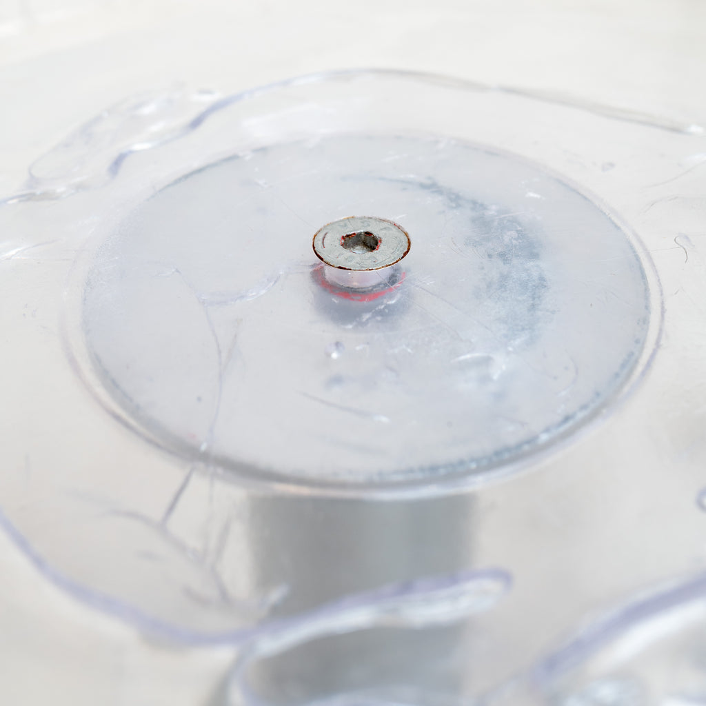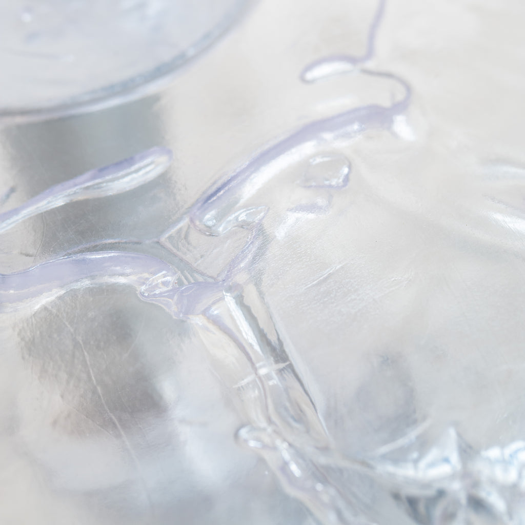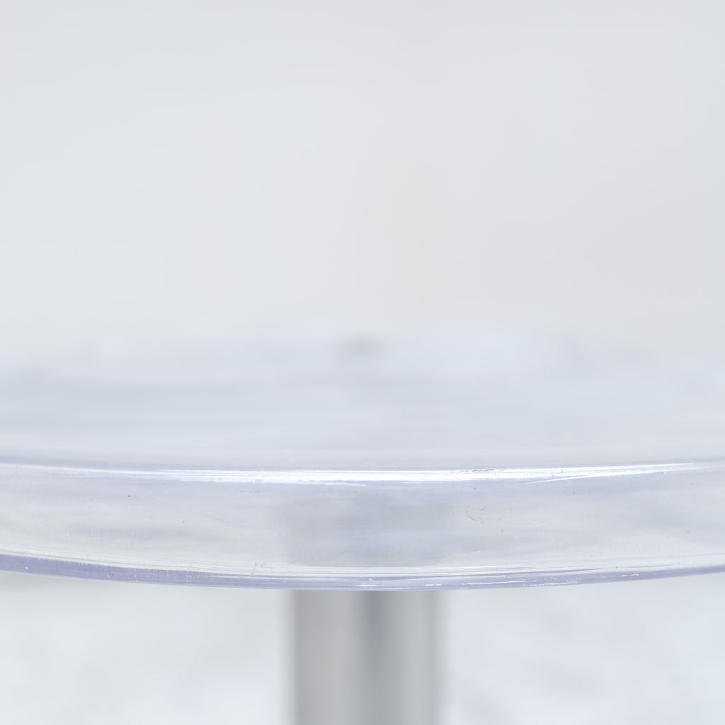 実験的なライン Sturm und Plastic による「Ice Table」を思わせる透明感あふれるテーブル。円形のフォルムと氷のような質感が、彫刻的な存在感と軽やかな雰囲気を空間にもたらします。